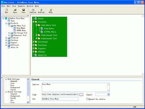 軟體簡介:AllyNova Tree Menu能夠為網頁創建JavaScript樹形功能表、CSS樹形功能表,