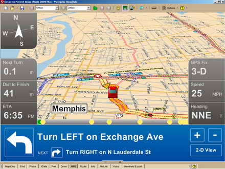 型電腦,Street Atlas 會隨著你移動,告訴你從目前所在位置到目的地的方向,在靠近