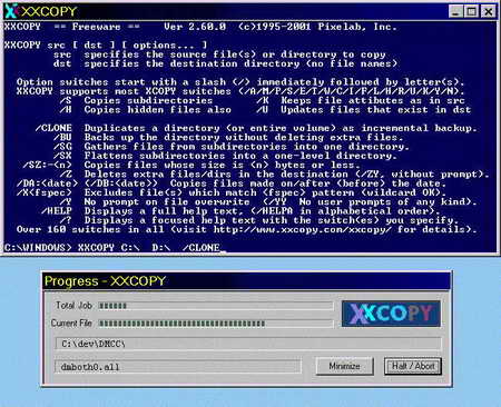 XXCOPY 使用跟 XCOPY 一樣的語法,它可以複製、移除、搜尋及列出檔/檔夾,能夠完全