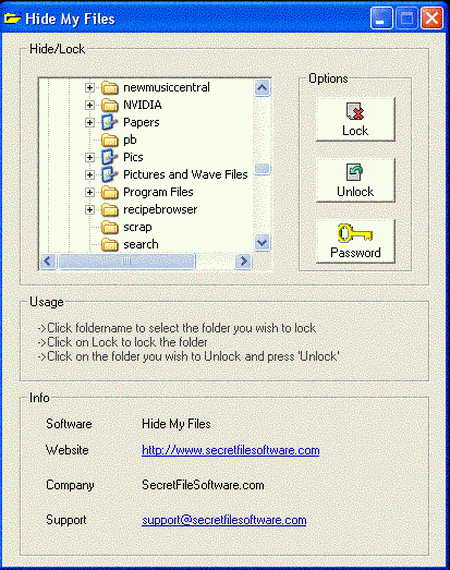 Hidemyfiles是一款檔加密隱藏軟體,可以使任意檔或檔夾隱藏,並加上密碼保護。