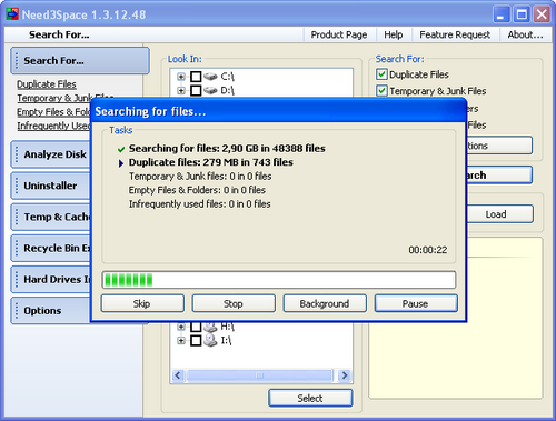 Need3Space 是個完整的控制和管理磁片的應用程式,你可以查找完全重複的檔、暫存檔案、