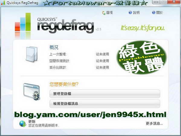 Quicksys RegDefrag V2.60 (登錄檔重組工具) 繁體中文版