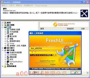 Fresh UI是一款優秀的系統組態、優化軟體,為您提供數百種WindowsXP/2000/98/95/