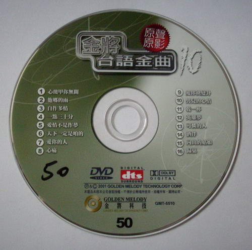 | 金將台語金曲原聲原影KTV DVD(十)(dvd一片裝) 商品編號: